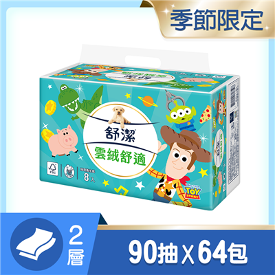 | 商品名稱 | 【舒潔】雲絨舒適抽取衛生紙-玩具總動員限定款 90抽X8包X8串/箱 |