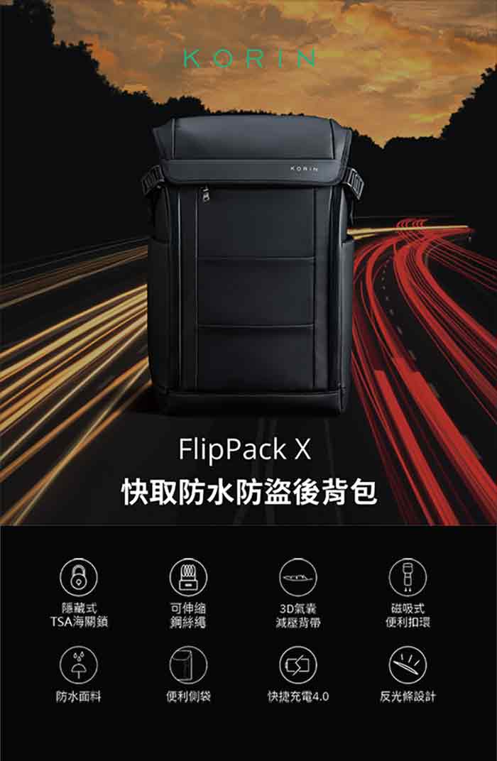 | 【商品名稱】 | 【KORIN】FlipPack X快取防水防盜後背包 [代理商公司貨] |