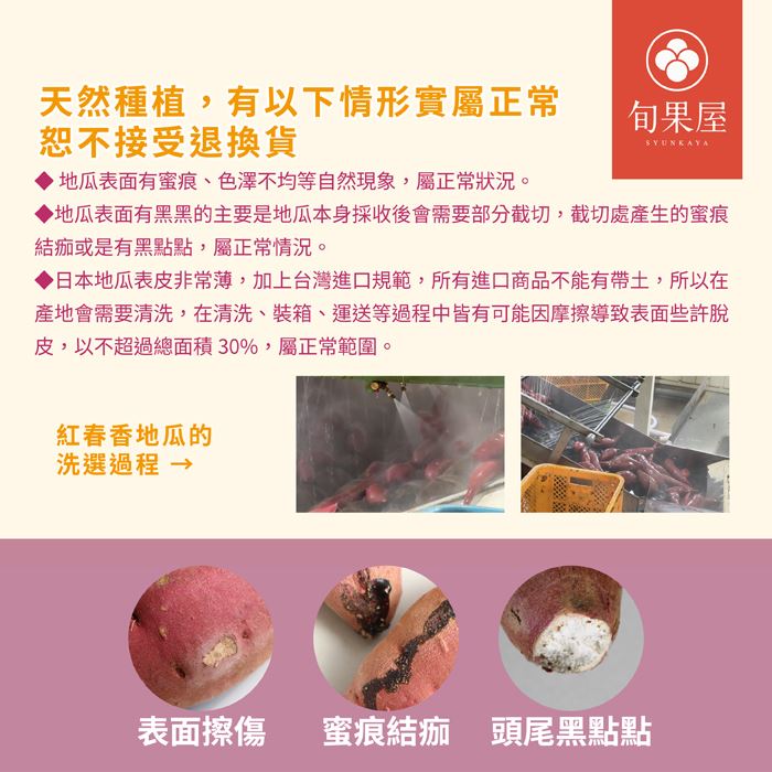 內容物:茨城縣紅春香地瓜3-5支/500g/包*6包/箱