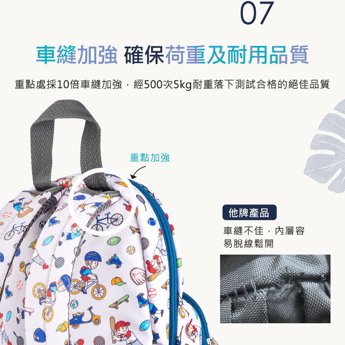 A:Hugger防走失背包採用高密度的尼龍布料,且搭配世界名牌的五金用料,在拉鍊的操作上損壞率極低。工廠生產的工法,也在肩背帶加強車縫。