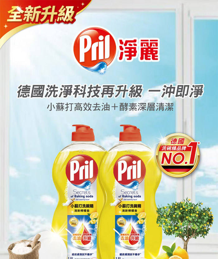品名 : Pril 小蘇打洗碗精清新檸檬香 1.5公升 X 2入