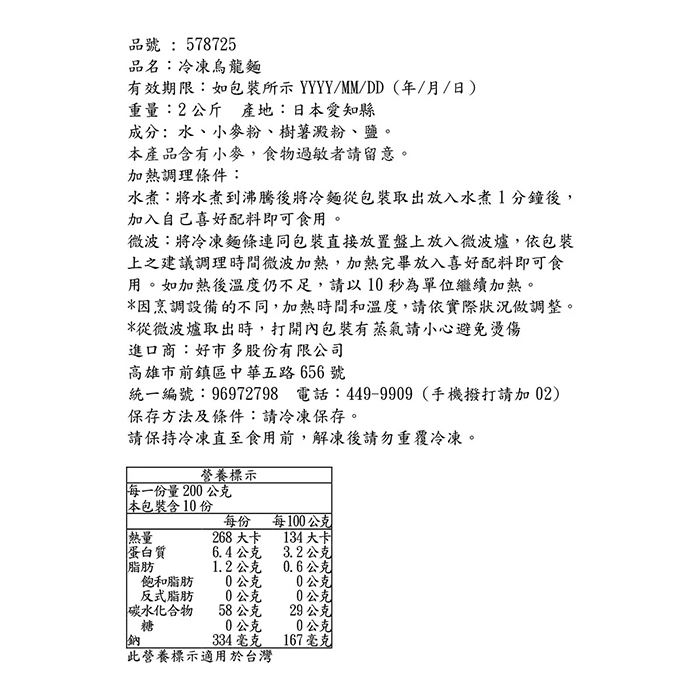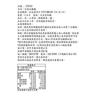 品名 : TableMark 日本讚岐 冷凍烏龍麵 200公克 X 10袋