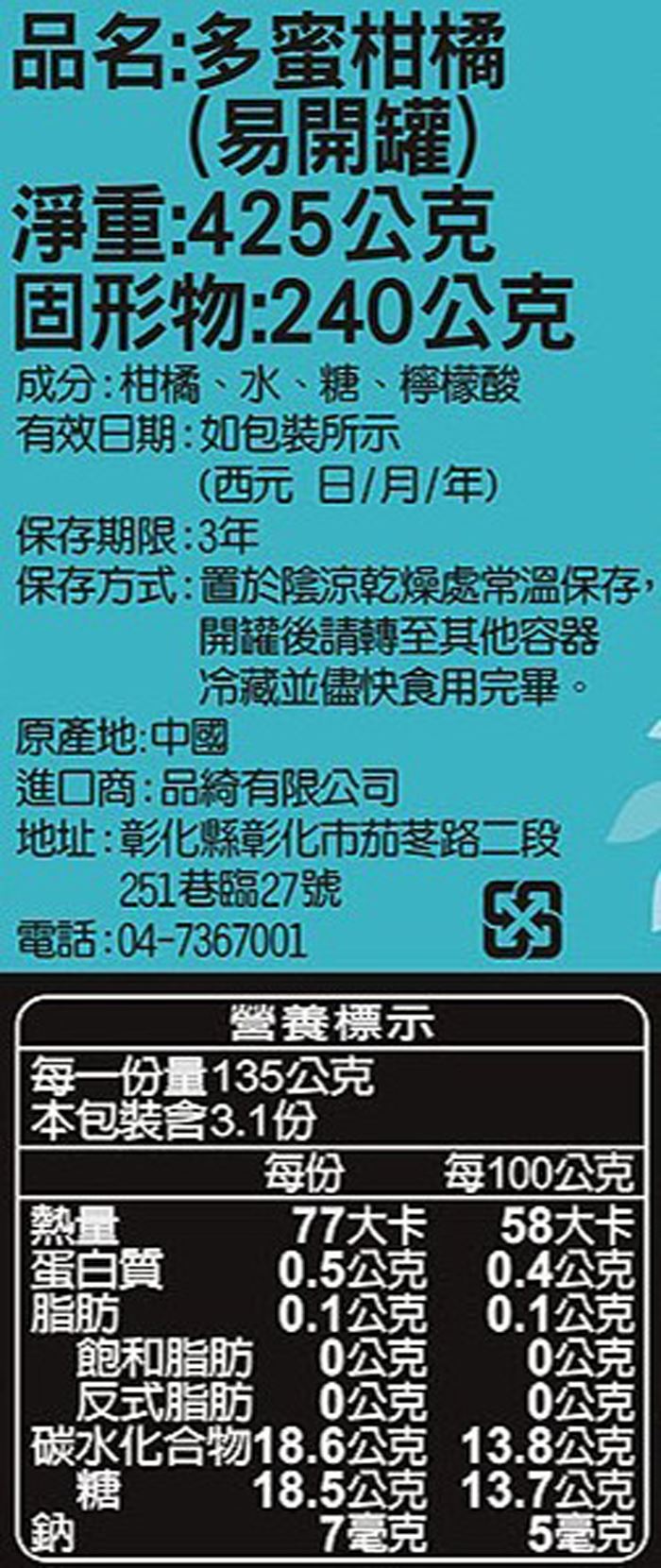 | 商品名稱 | 多蜜柑橘-易開罐(12入) |