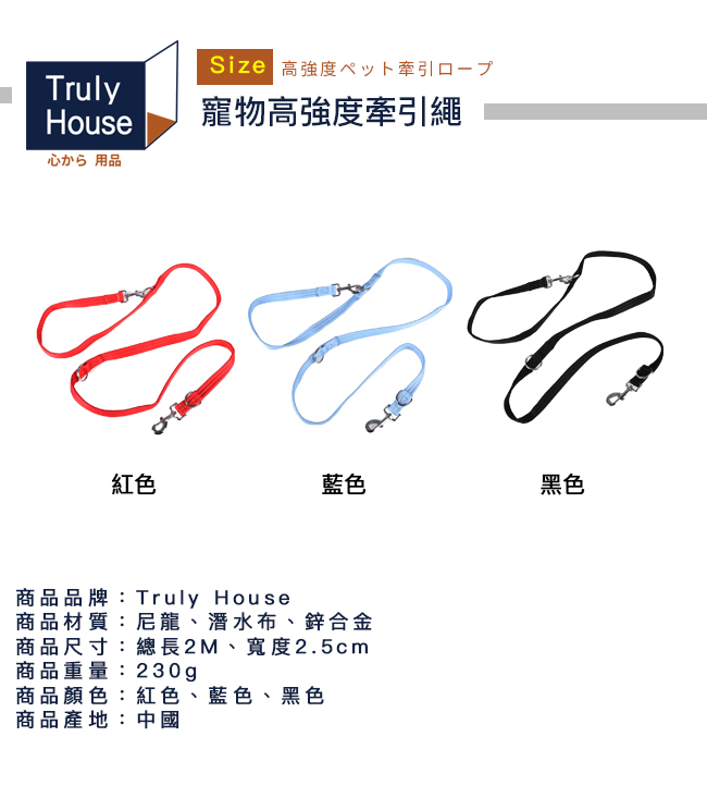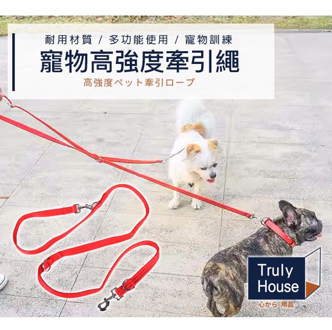 | 商品名稱 | 【Truly House】寵物高強度牽引繩一拖二 (三色) |