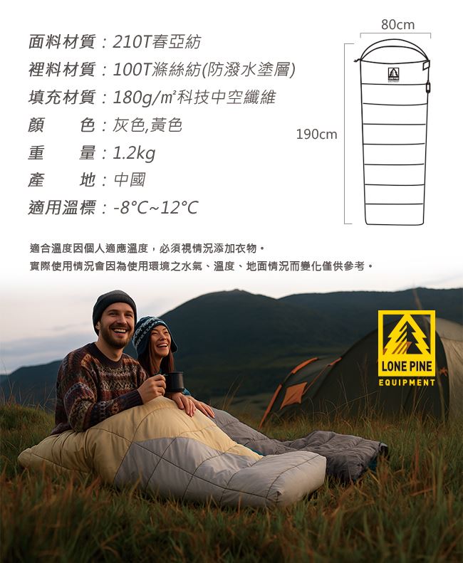 | 【商品名稱或型號】 | 【澳洲LONEPINE】加大款可機洗帶帽信封睡袋 (兩色) |
