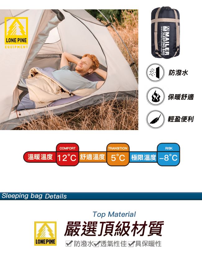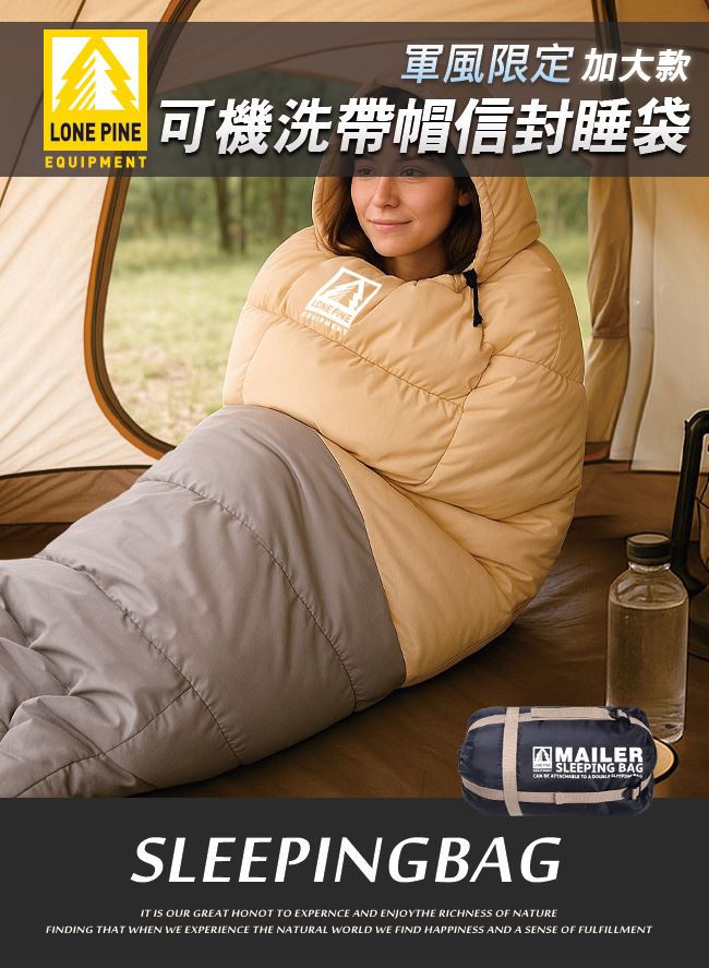 | 【商品名稱或型號】 | 【澳洲LONEPINE】加大款可機洗帶帽信封睡袋 - 黃色 [2入組] |
