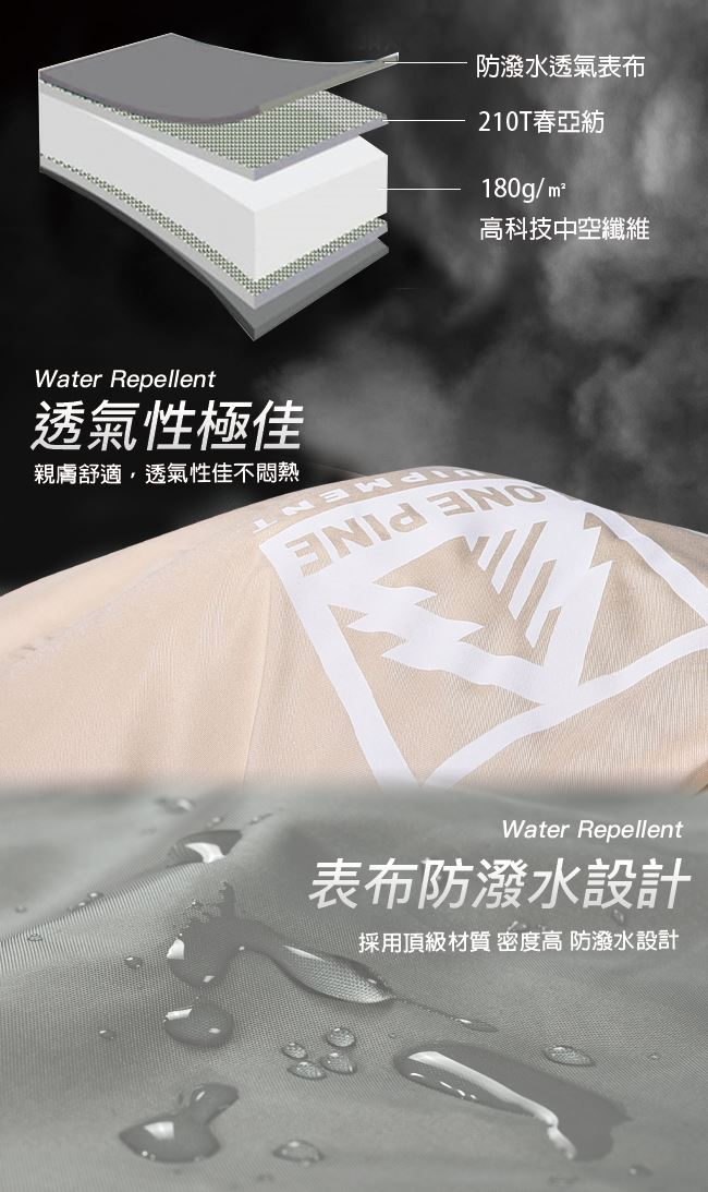 | 【材質或成分】 | 面料材質:210T春亞紡 裡料材質:100T滌絲紡(防潑水塗層) 填充材質:180g/㎡科技中空纖維 |