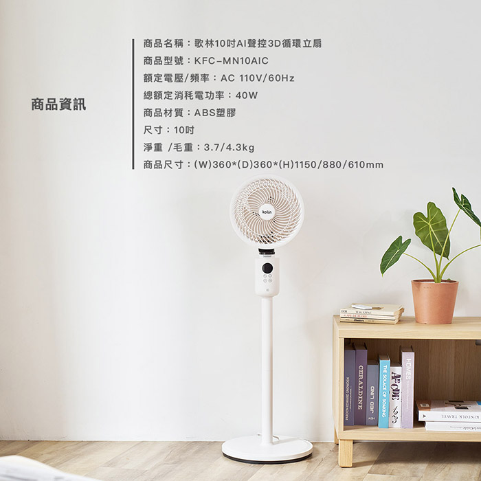 | 商品名稱 | 【Kolin 歌林】10吋AI聲控3D循環立扇 |