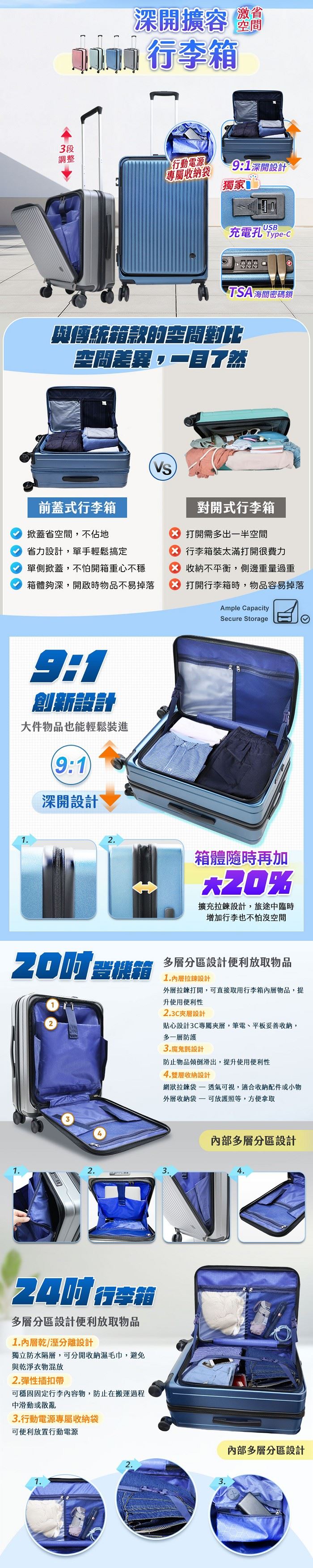 | 【商品名稱】 | 【FJ】20吋前開式激省空間擴容登機箱(KR20) - 4色可選 |