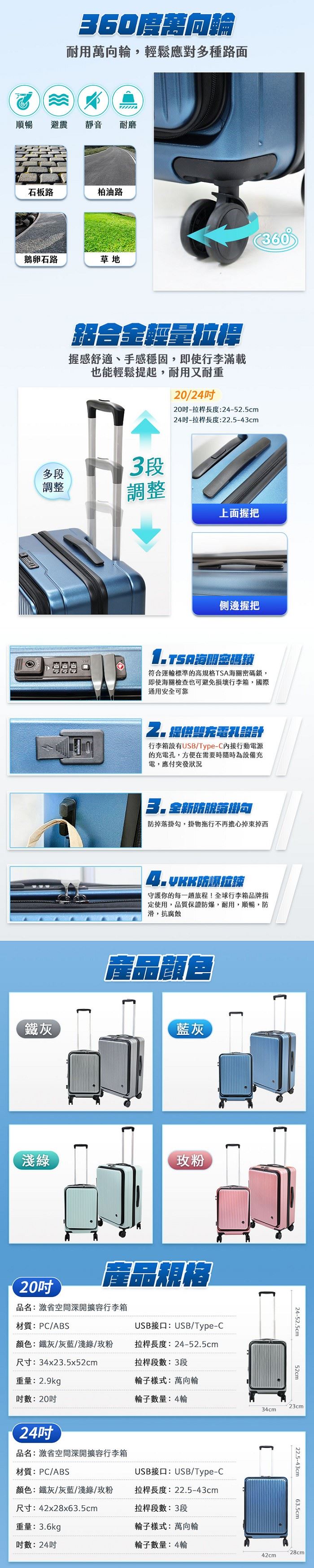 | 【商品名稱】 | 【FJ】24吋前開式激省空間擴容行李箱(KR24) - 4色可選 |