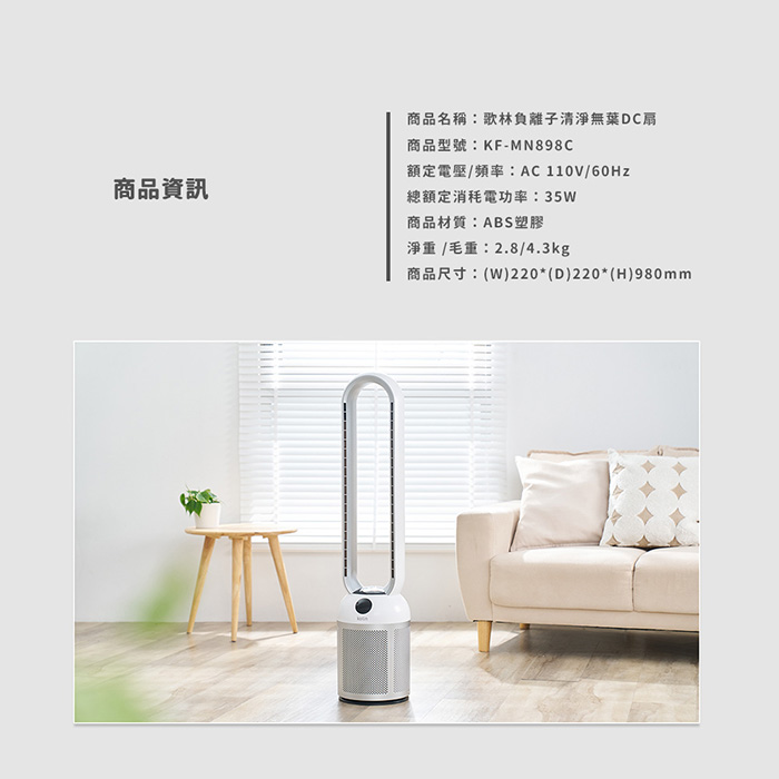 | 商品名稱 | 【Kolin 歌林】負離子清淨無葉DC扇 |