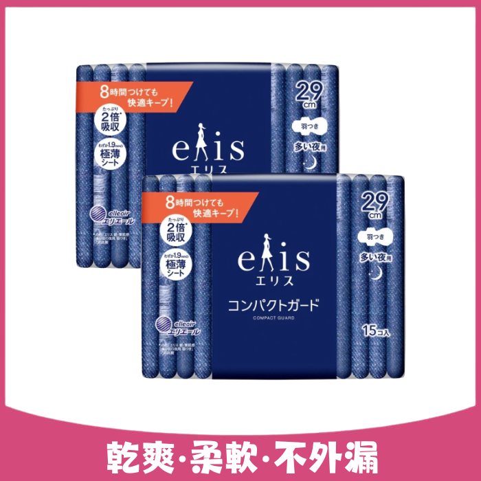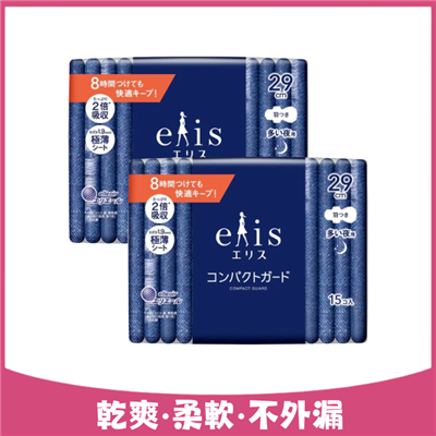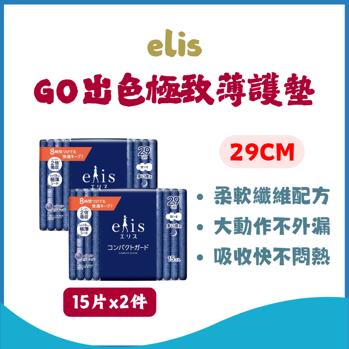 【elis】GO出色極致薄夜用衛生棉 29cm 15片*2包 |