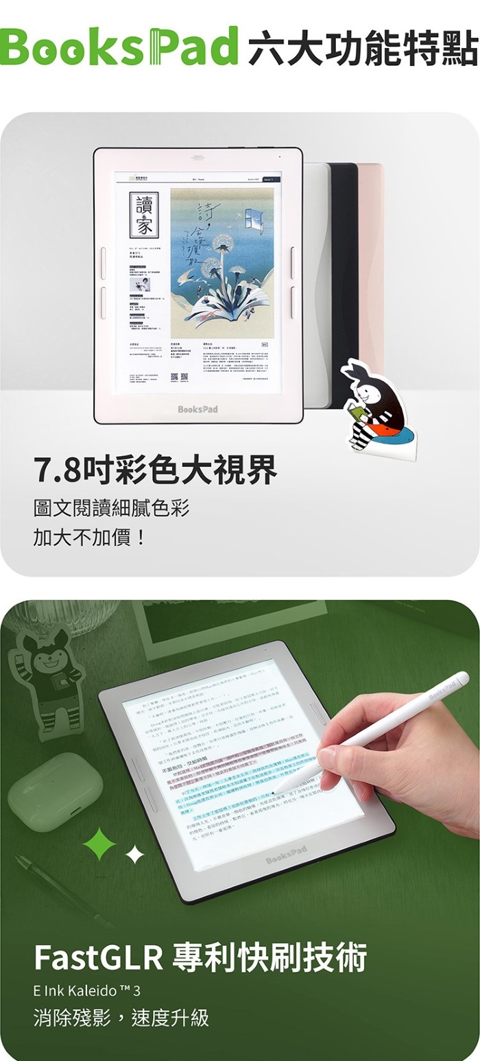【內容物】 BooksPad 7.8吋彩色閱讀器x1