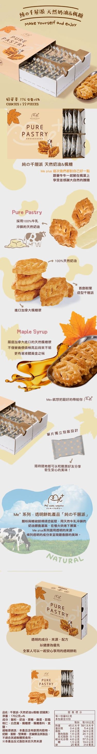 | 商品名稱 | 台灣優格- Me+天然奶油楓糖派*8盒/箱(附提袋) |