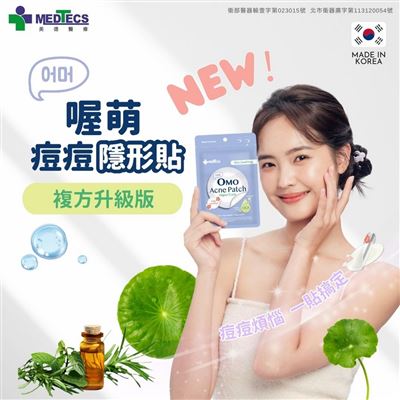 還在為反覆的痘痘煩惱嗎?全新【OMOMEDTECS美德喔萌痘痘隱形貼修護款】,不只隱形,更加入3大痘痘剋星,讓你在告別痘痘的同時,享受溫和修護,擁有健康平衡的無瑕美肌!