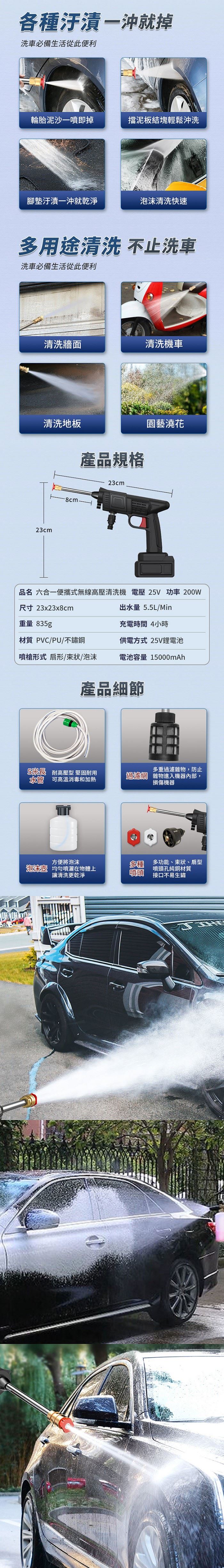 | 【商品名稱或型號】 | 六合一便攜式無線高壓清洗機 |