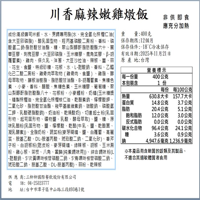 | 商品名稱 | 川香麻辣嫩雞燉飯 |