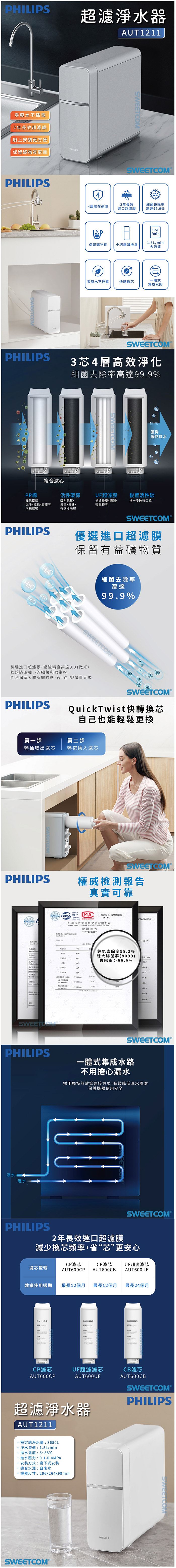 | 商品名稱 | 福利品-Philips 飛利浦 櫥上/櫥下兩用型 可直飲超濾淨水器(AUT1211) |