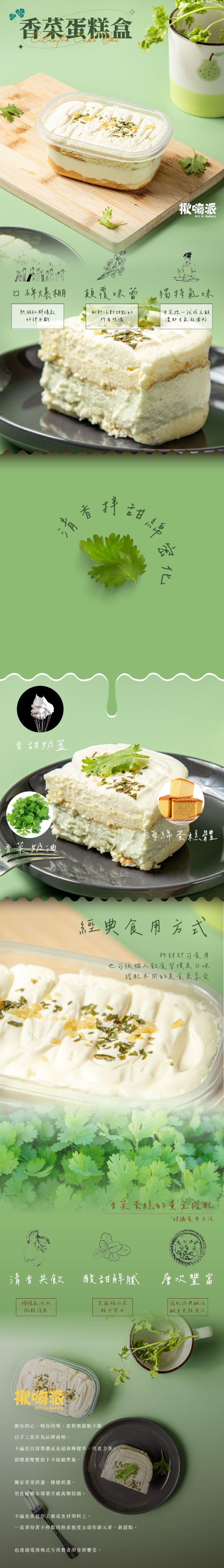 | 注意事項 | 為保留最佳風味,建議於退冰後 2 小時內享用完畢,感受香菜清香與蛋糕綿密在口中交融的完美時刻 |