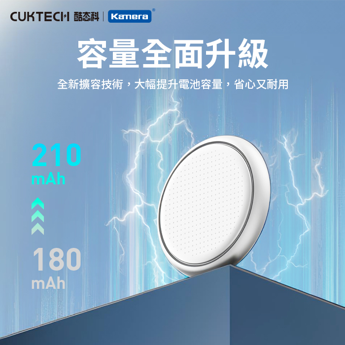 - 容量升級 210mAh,續航更久:全新擴容技術,電量提升,相較一般 CR2032 更耐用,減少頻繁更換困擾。