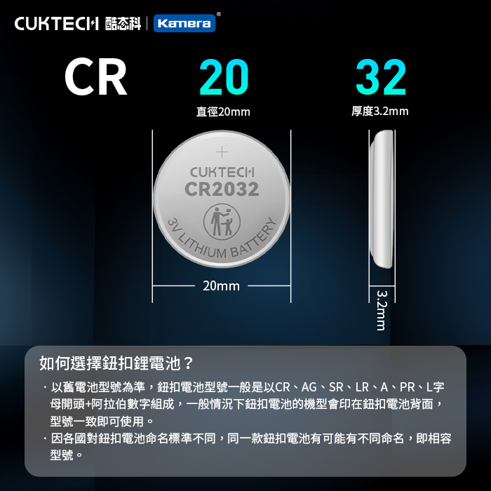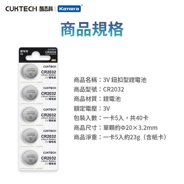 | 【商品名稱或型號】 | 【CUKTECH 酷態科】3V鈕扣型鋰電池(CR2032) [25入組] |