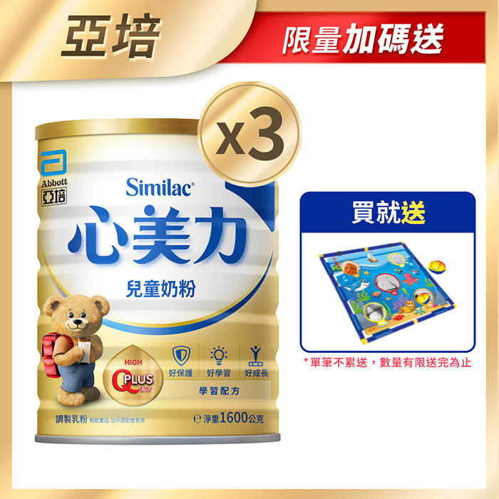 | 商品名稱 | [買3罐送贈品]亞培心美力4兒童奶粉(1600gx3罐)+(贈品)亞培 趣味沙包投籃組x1 |