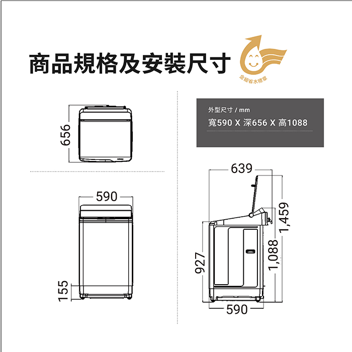 內容物:【HITACHI 日立】13.5KG 高效節能變頻直立式洗衣機 (LTLH3MVW0T-GG)