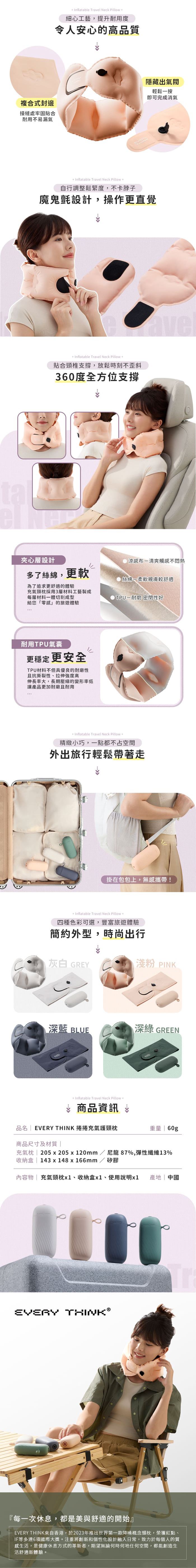 | 【商品名稱或型號】 | 【EVERY THINK】捲捲充氣旅行枕 - 4色可選 [1入組] |