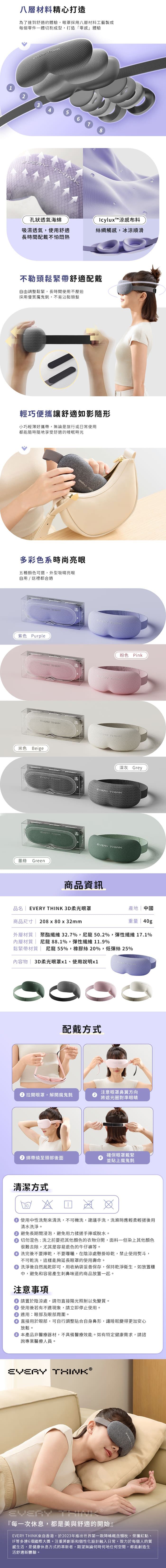 | 【商品名稱或型號】 | 【EVERY THINK】3D柔光眼罩 - 5色可選 [1入組] |