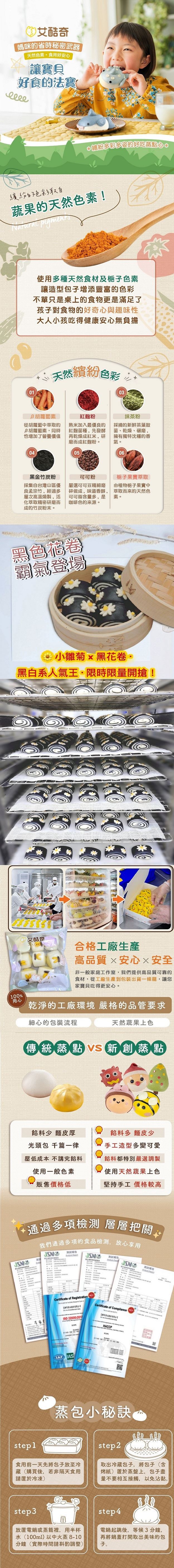| 內容物(完整成份/食品添加物) | 麵粉、水、細砂糖、棕櫚油、竹碳粉、酵母(酵母、乳化劑{山梨醇酐單硬脂酸酯}、抗氧化劑{維生素C})、益麵劑(水、乳酸硬酯酸鈉、丙酸鈣)、泡打粉(酸性焦磷酸鈉、碳酸氫鈉、玉米澱粉、磷酸二氫鈣)、花青素-蘿蔔紅(R)、黃豆粉、β胡蘿蔔素粉、奶香粉、鹽。 |