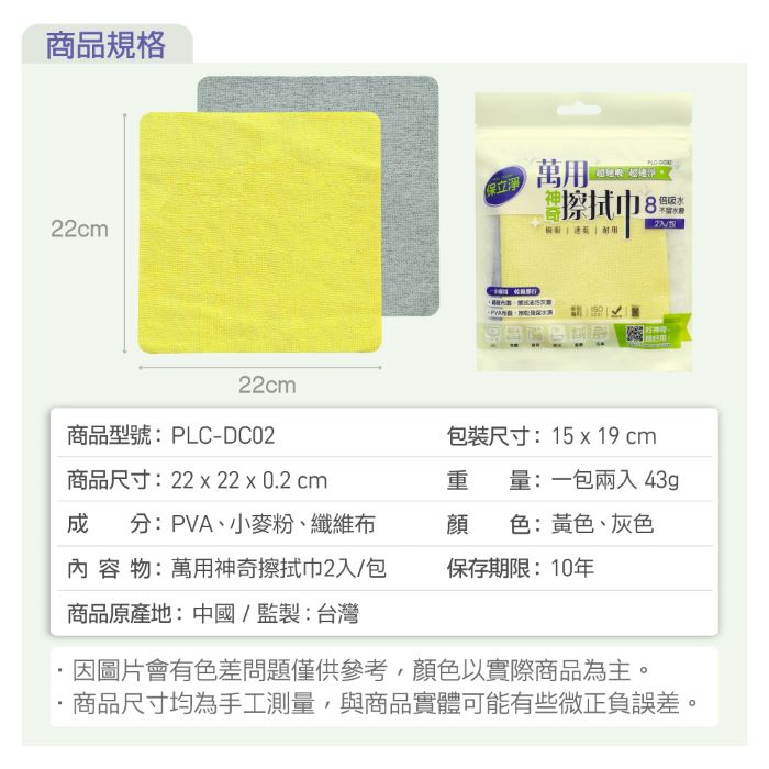 | 商品名稱 | 保立淨萬用神奇擦拭巾 PLC-DC02 (2入/包) 買1送1 共2包 |