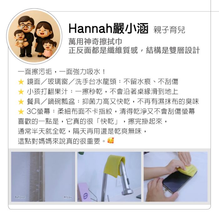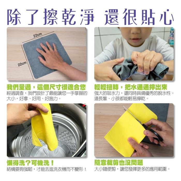 新一代材質8倍吸水不留水痕,瞬吸、速乾、耐用