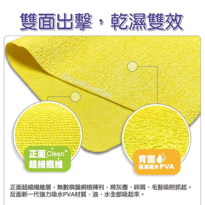 雙面材質,正面纖維去塵碎屑,背面pva吸油吸水