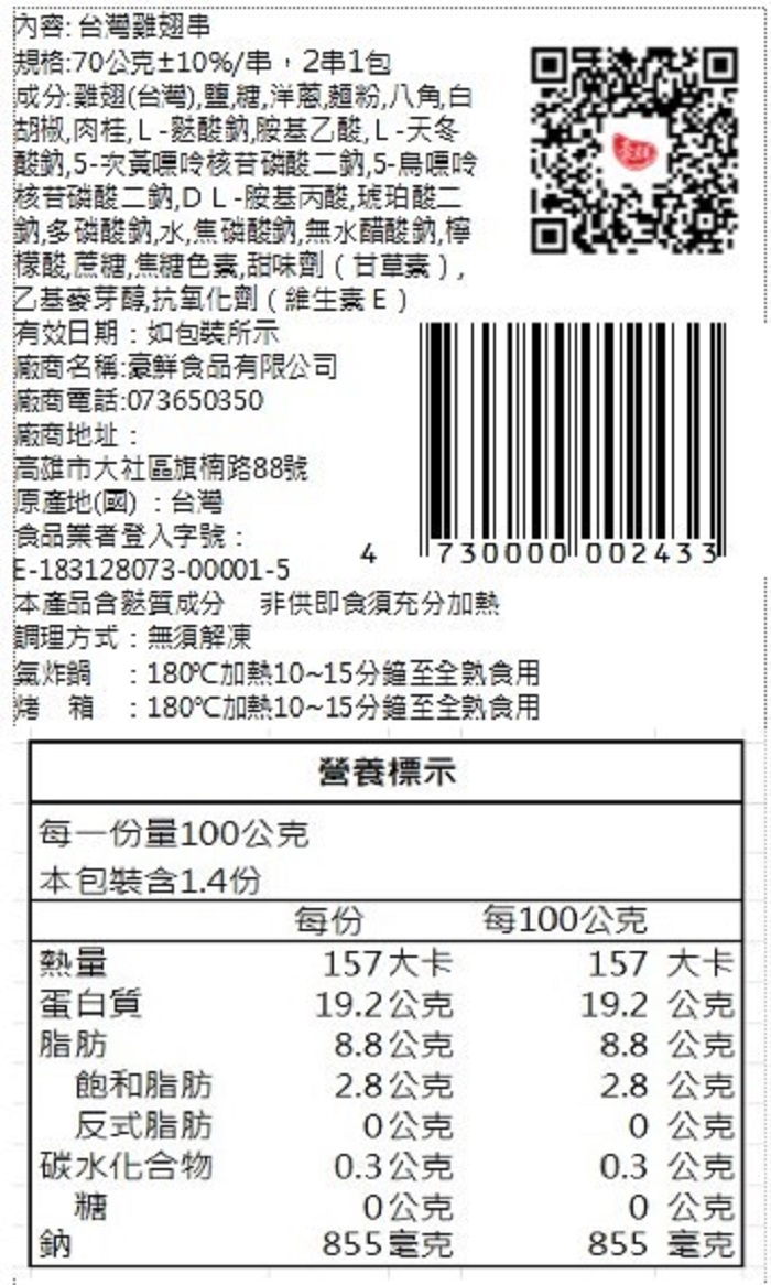| 內容物(完整成份/食品添加物) | 如內文標示 |