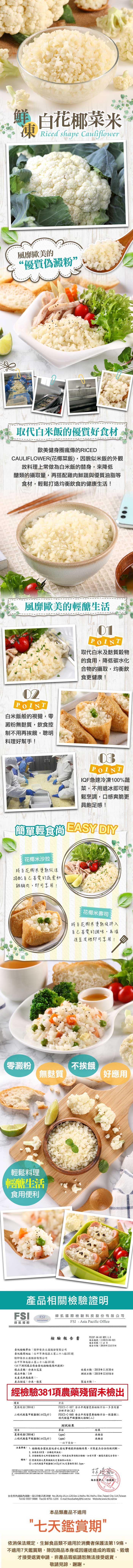 | 商品名稱 | 愛上新鮮-家庭號鮮凍白花椰菜米(10包) |