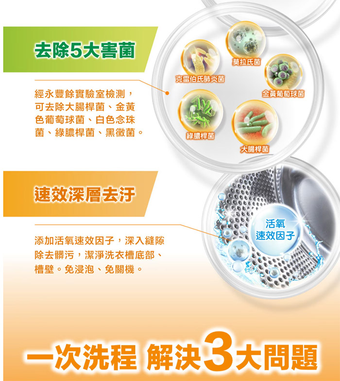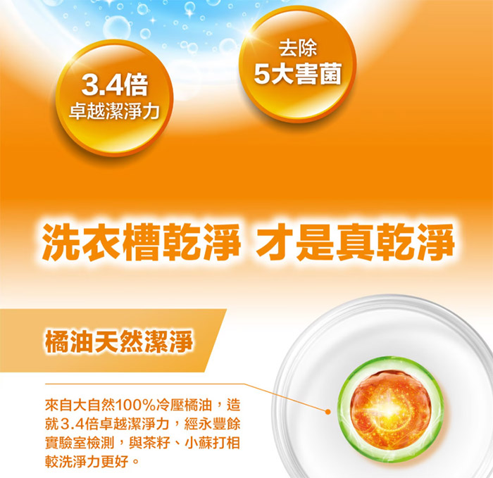 成分 : 天然食品級橘油、過碳酸鈉(氧系漂白劑)、TAED(活性氧催化劑)