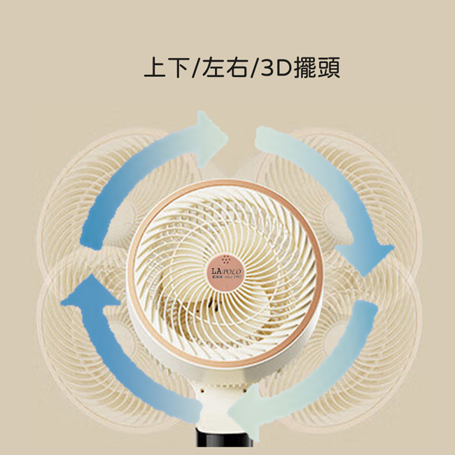 | 商品名稱 | 【LAPOLO藍普諾】9吋3D擺頭AI語音聲控循環扇 LA-8017 |