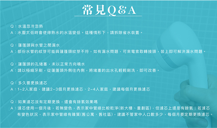 ※使用後若蓮蓬頭與水管處發生漏水問題,代表需要專屬的轉接頭安裝在交接處,請電話聯絡0800-010100轉1(上班時間:週一至週五9:00~17:00)說明您的地址,索取零件。 1. 請使用符合自來水法基準的水。 |