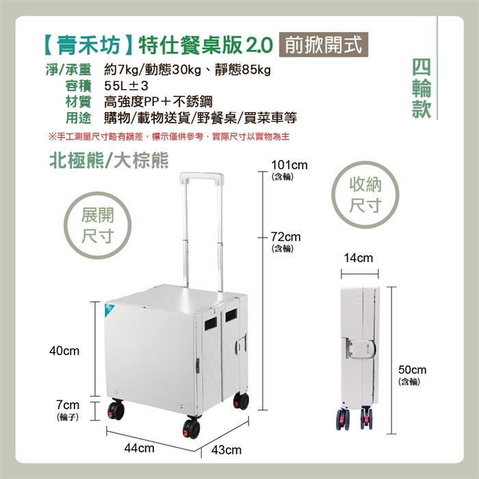 | 【商品名稱或型號】 | 【青禾坊】特仕餐桌版2.0拉拉車(四輪款) - 2色可選 [1入組] |