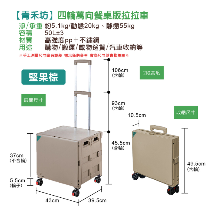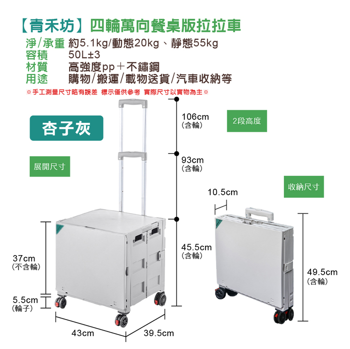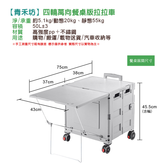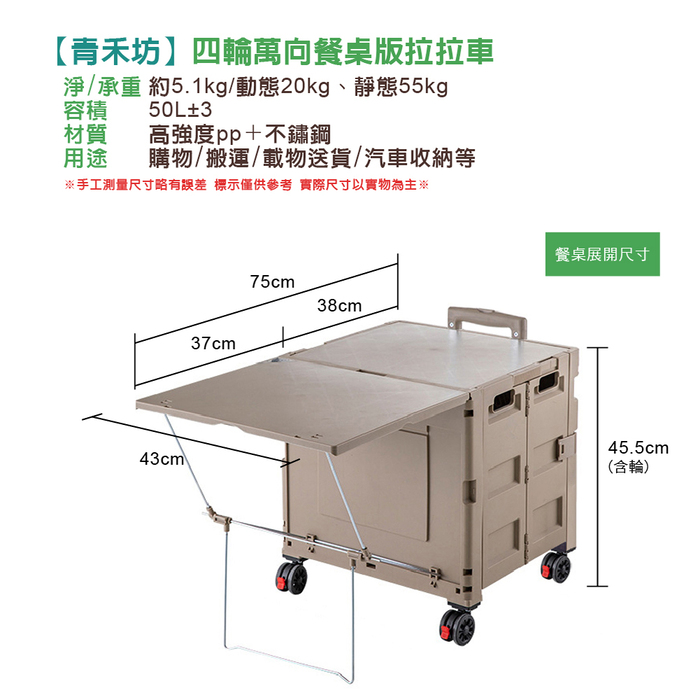 | 【商品名稱或型號】 | 【青禾坊】四輪萬向餐桌版拉拉車 - 2色可選 [1入組] |