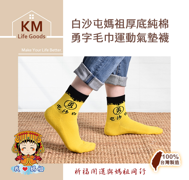 | 【商品名稱】 | (團)【KM生活】MIT白沙屯媽祖厚底純棉勇字運動氣墊襪 [10雙組] |