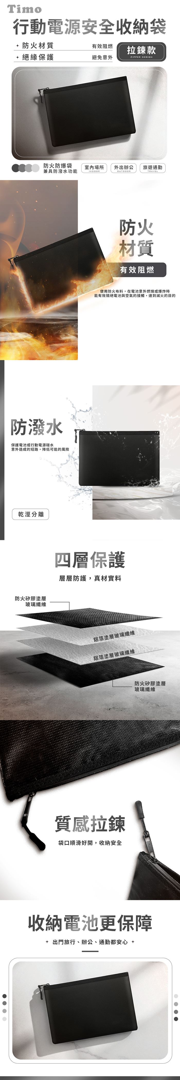 | 【商品名稱或型號】 | 【Timo】行動電源安全收納袋(防火防爆) - 拉鍊款 |