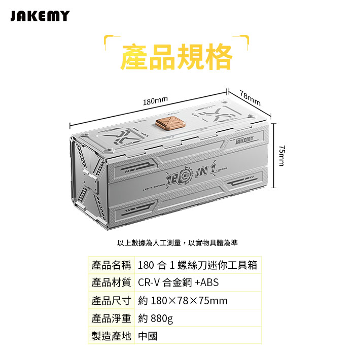 | 【商品名稱或型號】 | 【JAKEMY 傑科美】180合一手動螺絲刀迷你工具箱 |