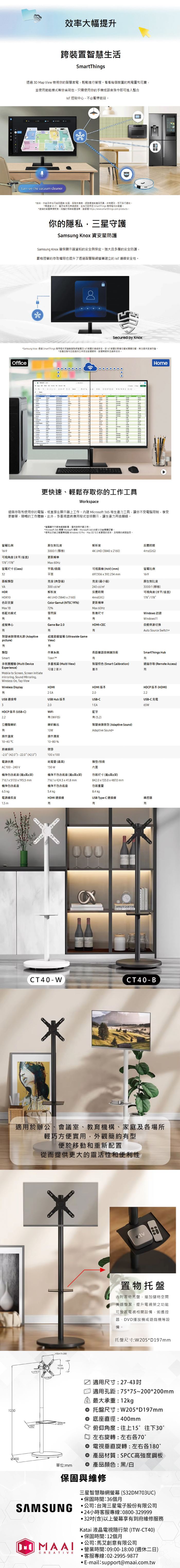 | 內容物 | S32FM702UC螢幕+ITW-CT40-B移動式立架 |
