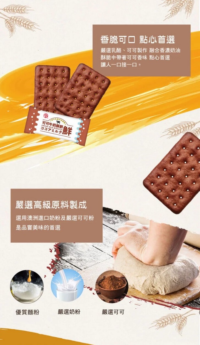 | 商品名稱 | 中祥 可可牛奶酥餅90g 12入/箱 |