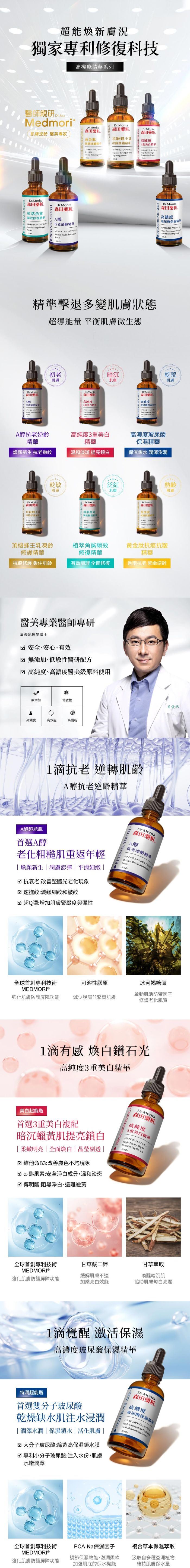 | 成分 | 主要活性成分:維他命B3、傳明酸、 x-熊果素、甘草萃取、積雪草萃取、 專利多醣體 MEDMORIQ 全成分/Ingredients :Water/Aqua, Dipropylene Glycol, Isopentyldiol, Diglycerin, Polyglycerin-3, Olive Oil PEG-7 Esters, PEG/PPG/ Polybutylene Glycol-8/5/3 Glycerin, Glycosyl Trehalose, Ammonium Polyacryloyldimethyl Taurate, Niacinamide, Phenoxyethanol, Pentylene Glycol, Hydrogenated Starch Hydrolysate, Methylparaben, Sphingomonas Ferment Extract, Panthenol, PEG-40 Hydrogenated Castor Oil, Trideceth-9, Chlorphenesin, Allantoin, Dipotassium Glycyrrhizate, Sodium PCA, Glycerin, Squalane, Tranexamic Acid, Fragrance, Alpha-Arbutin, Sodium Hyaluronate, Glycyrrhiza Glabra (Licorice) Root Extract, Centella Asiatica Extract, Hydrolyzed Hyaluronic Acid, Pholiota Microspora Polysaccharides, Potassium Sorbate, Sodium Benzoate. |