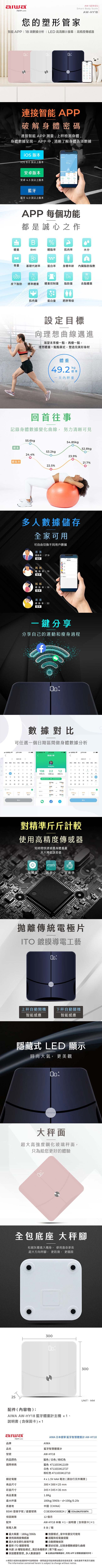 | 商品名稱 | AIWA AW-HY18 健康管理藍牙智慧體重計-桃夭 |