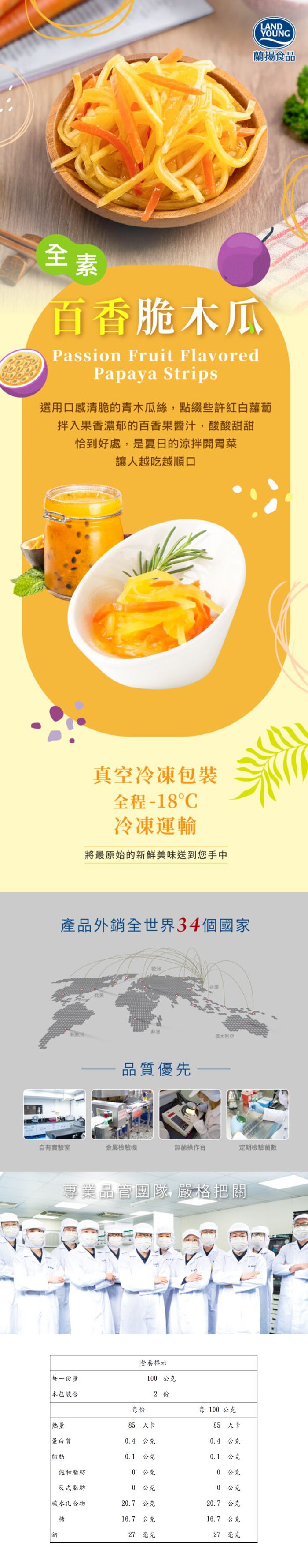 | 過敏原資訊 | 本產品生產製程廠房,其設備或生產管線有處理芒果、花生、牛奶、蛋、堅果類、芝麻、含麩質之穀物、大豆、亞硫酸鹽類及其製品 |