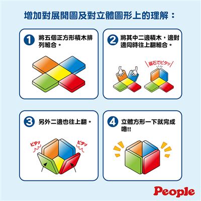 在玩積木的過程中,自然的領悟平面組合成立體的概念。對於往後小學生最頭痛的「展開圖及立體」,