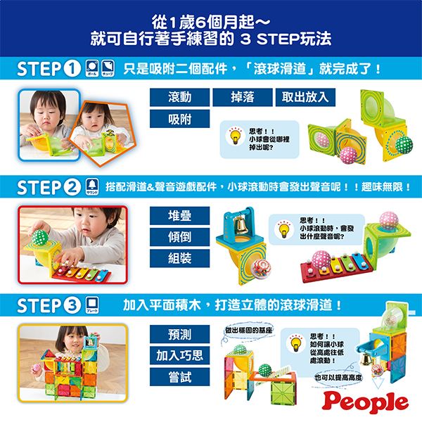 | 商品名稱 | 日本PEOPLE-益智磁性積木BASIC系列-滾球滑道&聲音遊戲組 |